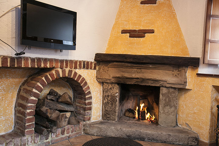 - 1 Salón equipado con chimenea, televisión y aseo.